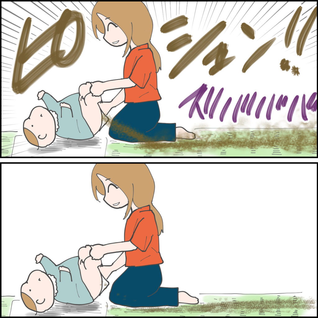 生後三ヶ月くらいの時の話です。まだミルクと母乳しか飲んでおらずウンチもゆるゆるの時期。