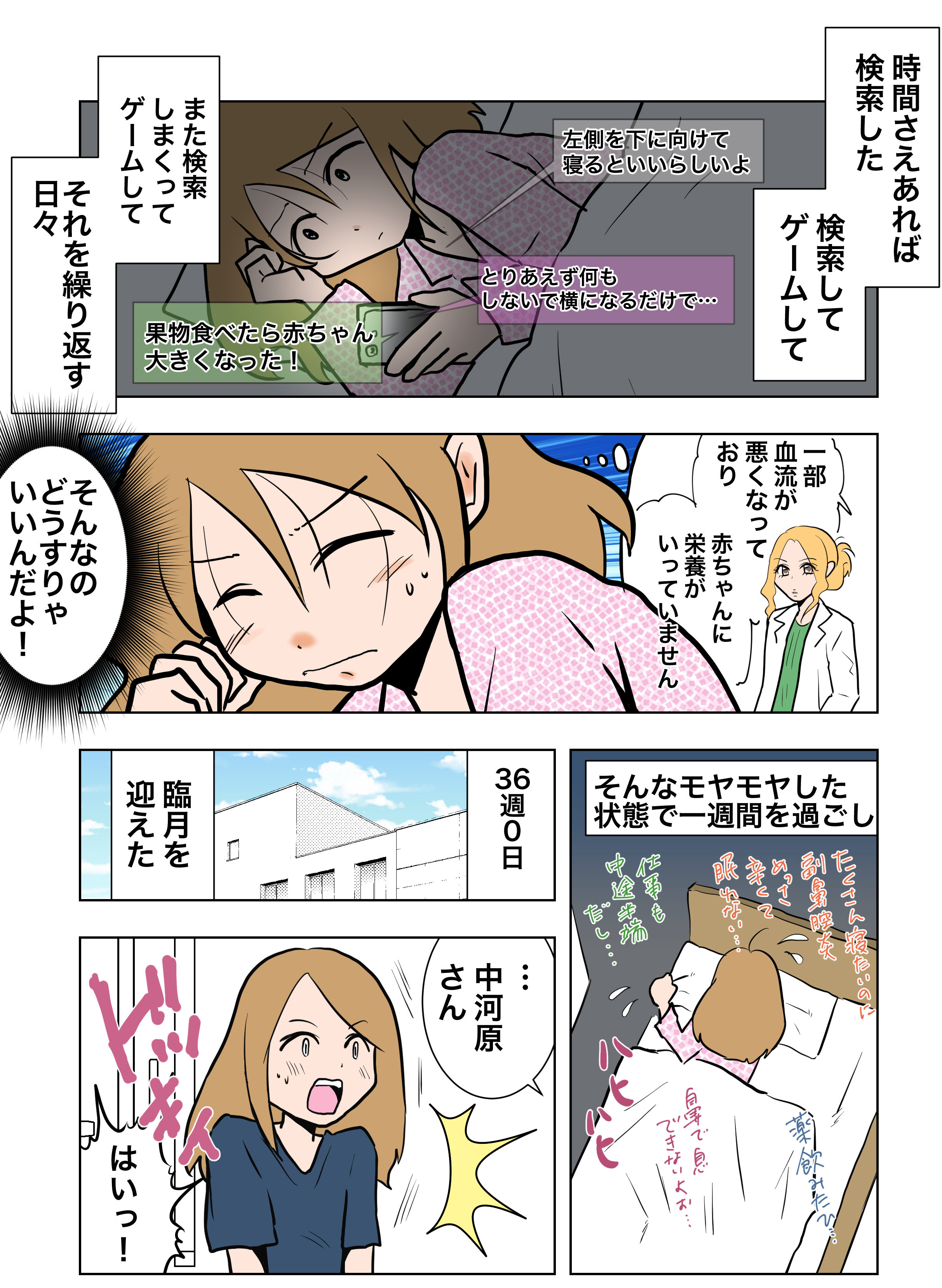 管理入院したことにより仕事からも家事からも解放され、だらだらと寝ているだけでかなり改善されました。妊婦にとって「休む」ということはかなり重要なことなのです。
