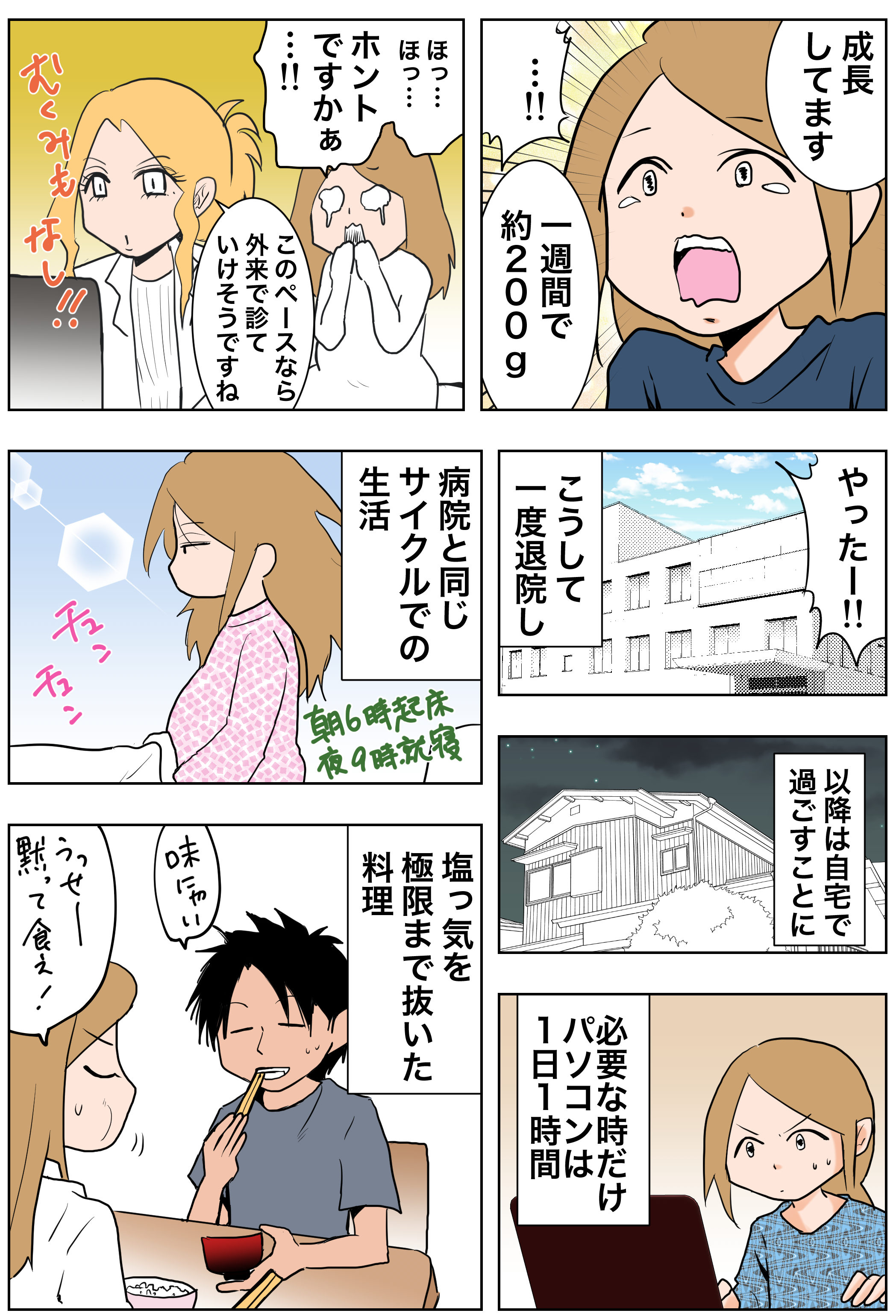 一週間の管理入院でだいぶ改善が見られ、自宅療養の許可が下りました。自分で言うのもなんですが、かなり頑張ったと思います。私以外の命が係っていたのですから。