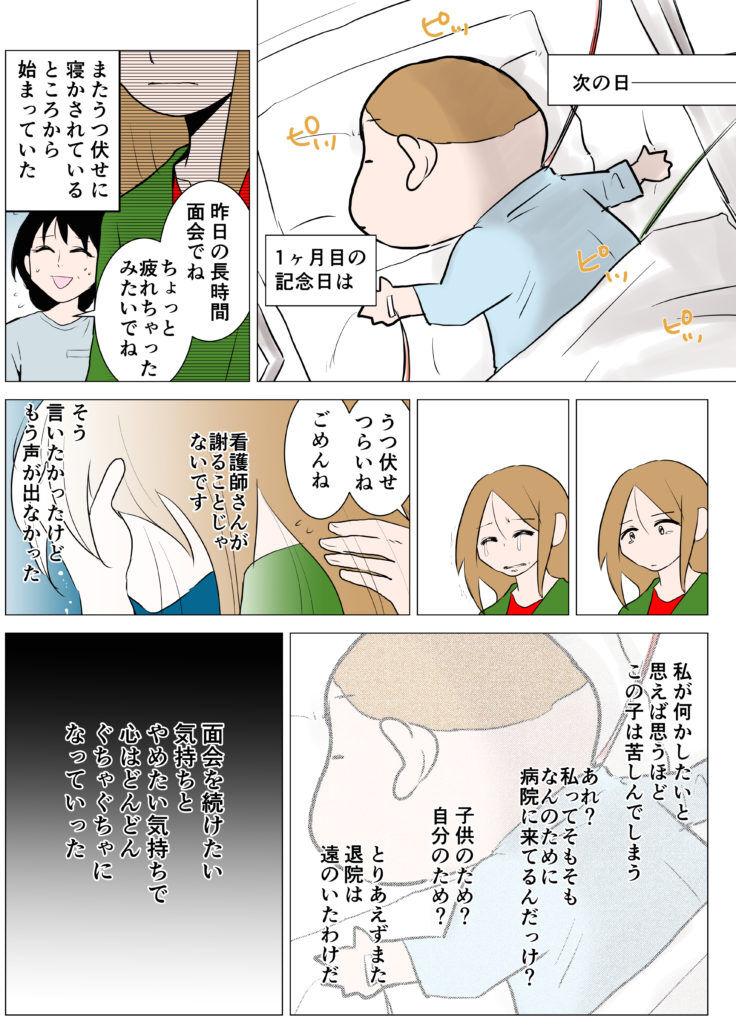 しかしこの日は生まれて一か月の記念日。ウキウキの長時間面会を終えた次の日でした。