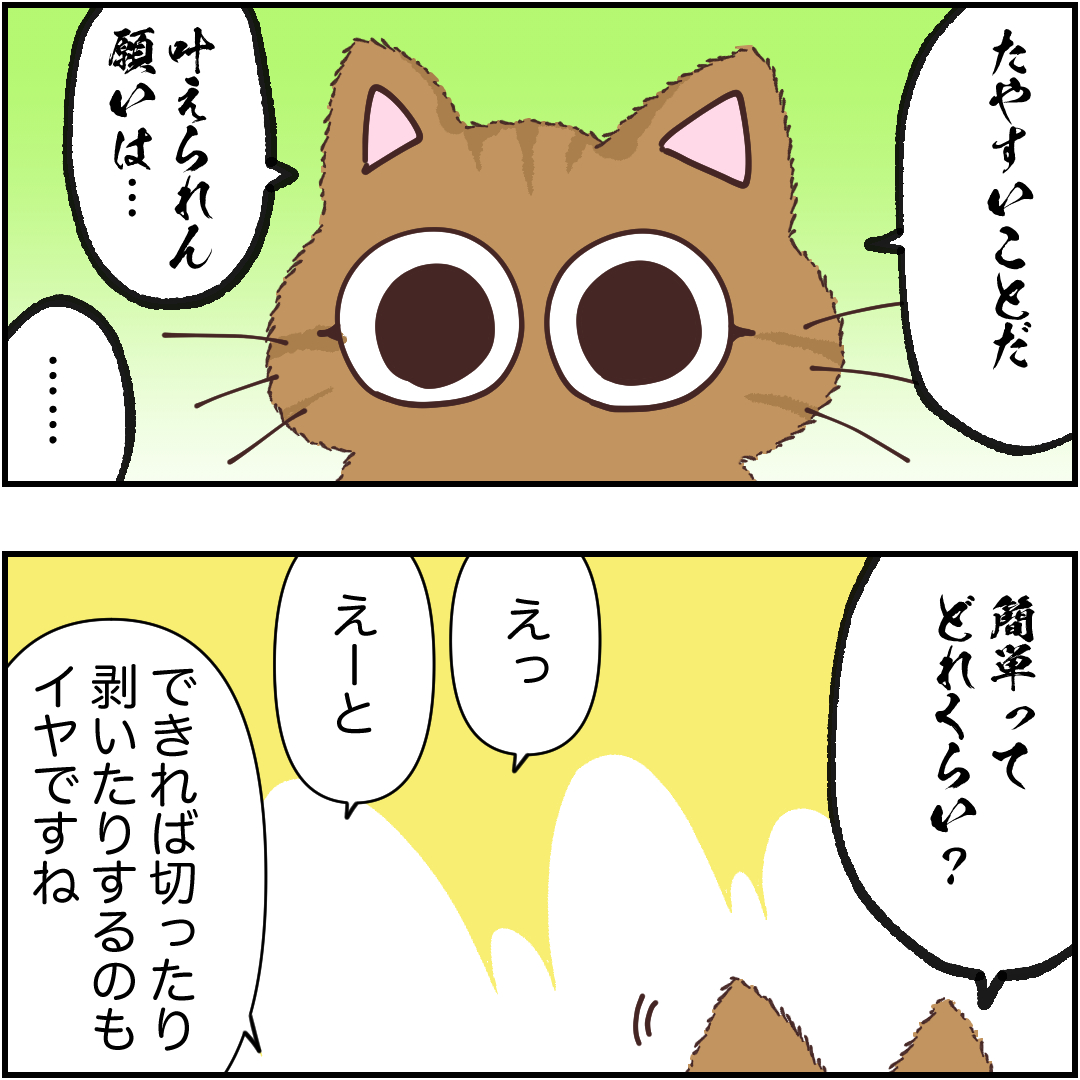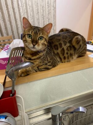 台所に立つとずっとここで料理を見守っているので軽くプレッシャーなのである