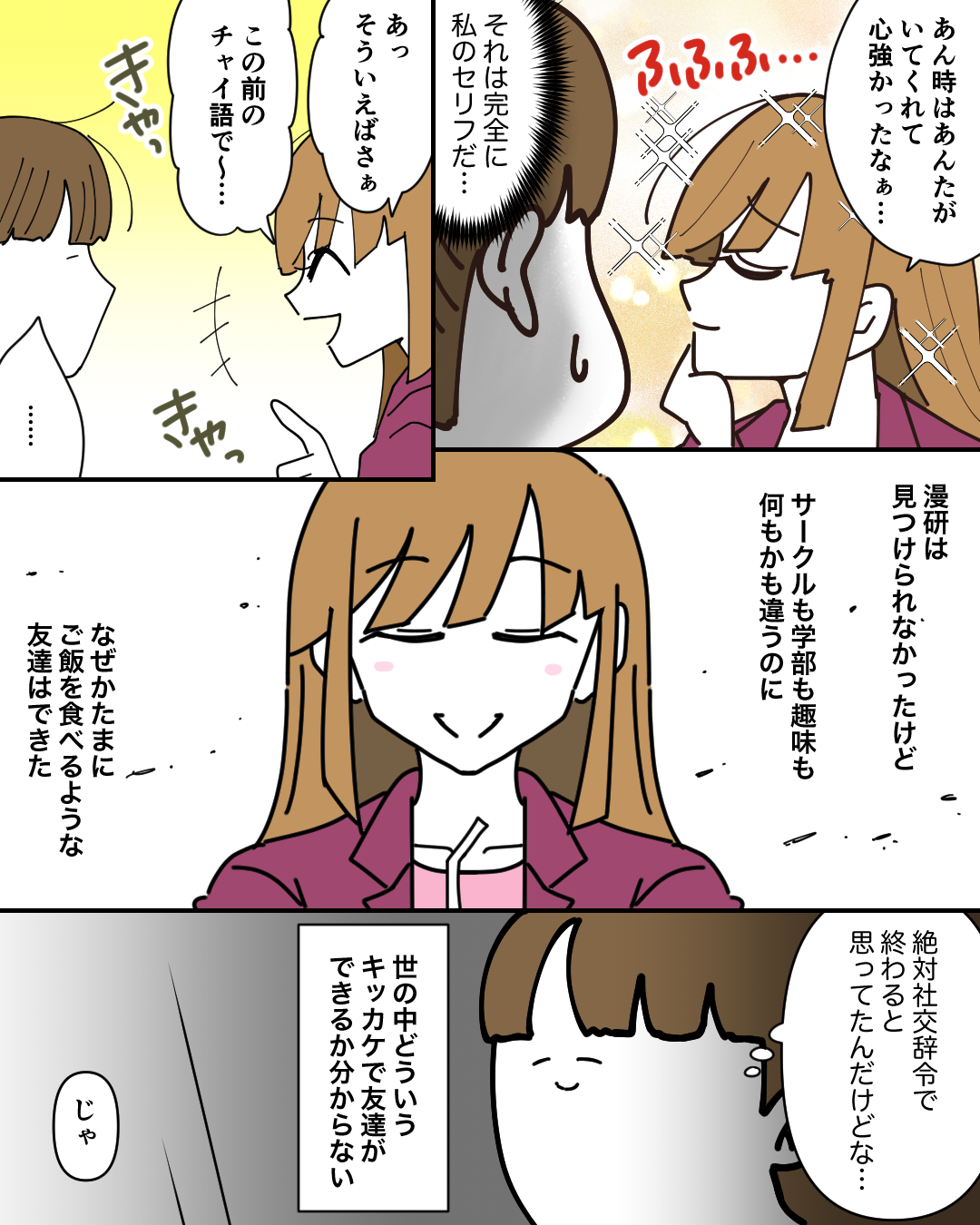 というわけで憧れの漫研には入れませんでしたが、なぜか違う世界の住人とお友達になれたよ!という話でした