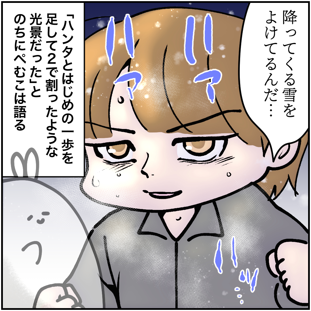 雪を全部よけきった(と思っている)彼の表情は、とても晴れやかで大人への階段を上ったかのようでした…